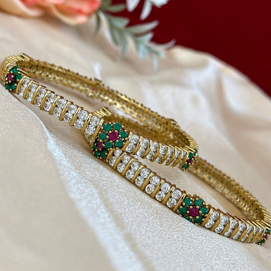 Elegant Gold Bangles Set with Ruby Emerald Floral Design | CZ Diamond Look Kada | Indian Wedding Bridal Jewelry | Gift for Her