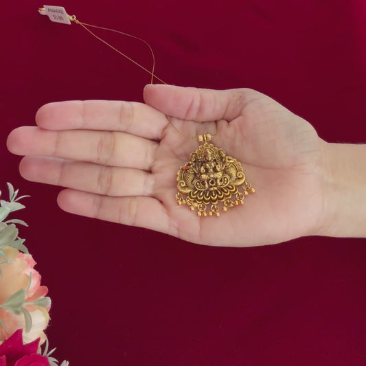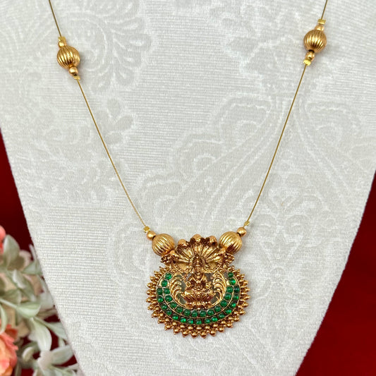 Antique Gold Lakshmi Pendant Necklace, Invisible Chain Temple Jewelry, South Indian Long Necklace, Traditional Ethnic Pendant Gift for Women