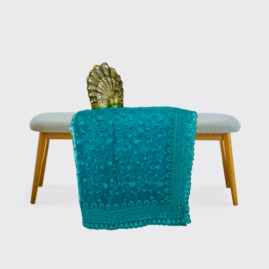 Teal Green Organza Saree with Intricate Floral Embroidery and Contrasting Readymade Blouse - Lightweight Designer Saree for Special Occasions