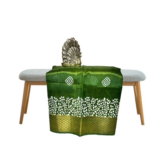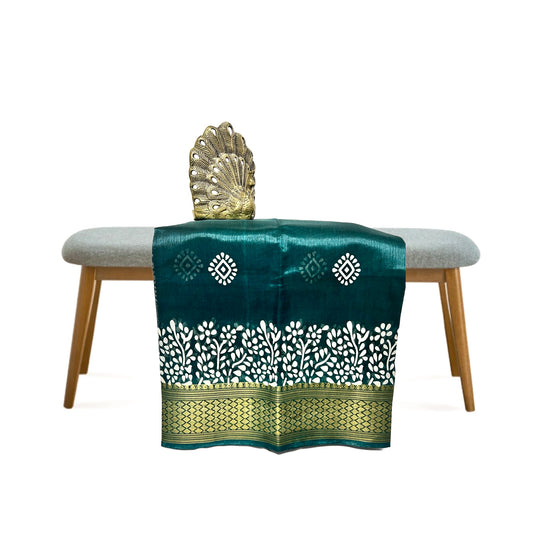 Sea Green floral printed tussar Silk saree with Jari border & intricate pallu