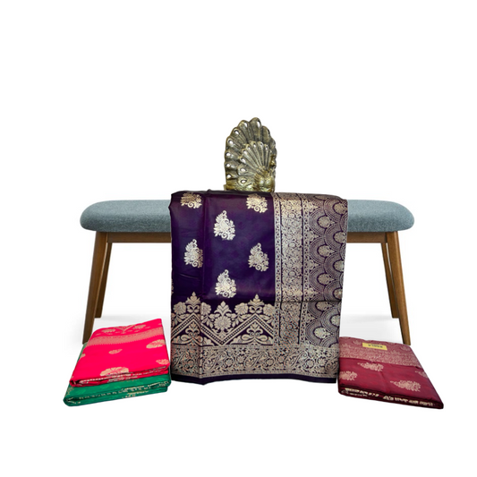 Dark Purple Jacquard Banarasi Silk Saree