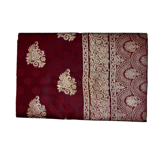 Burgundy color Chandrakor Semi Paithani Saree with Copper Zari Border and Rich Pallu