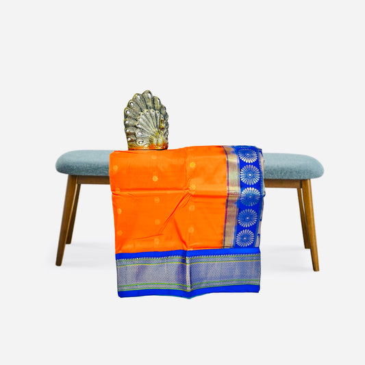 Dark Orange And Blue Kadiyal Semi Silk Paithani Saree