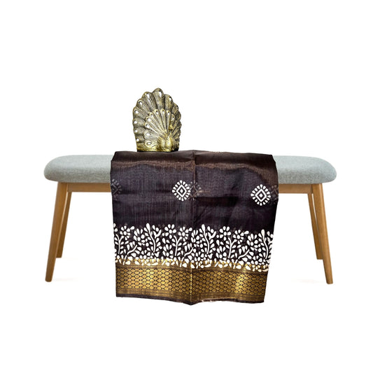 Coffee Bean Color Soft Slub Cotton Silk Saree With Batik Print