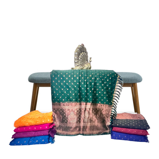 Bottle Green Color New foil work fancy fabric saree