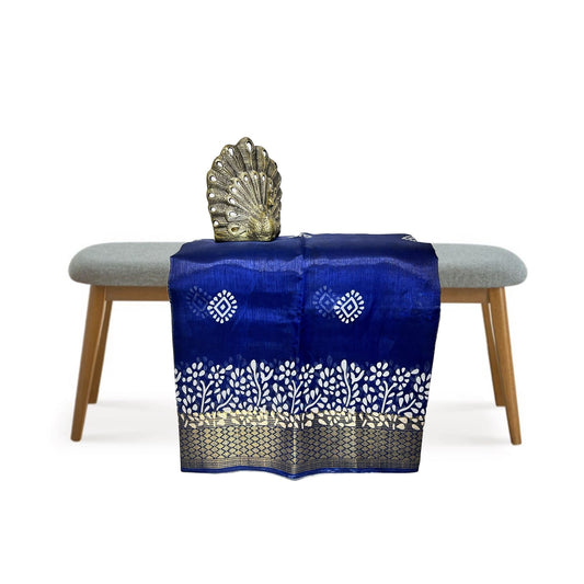 Dark Blue Color Soft Slub Cotton Silk Saree With Batik Print