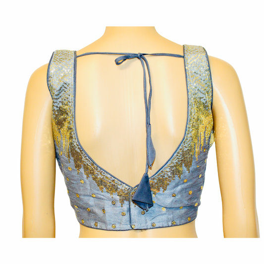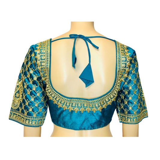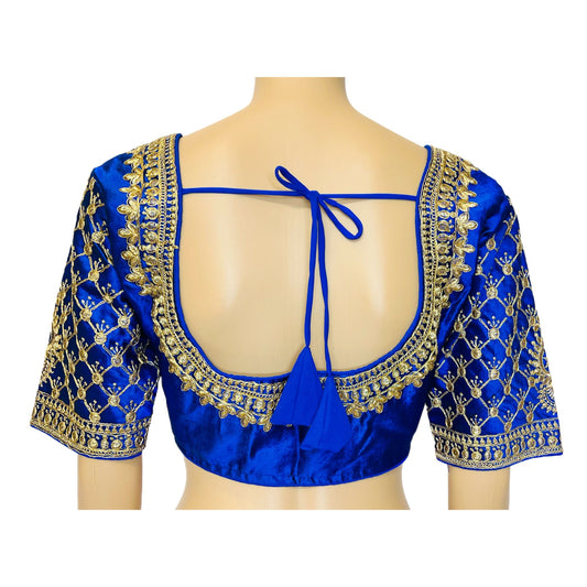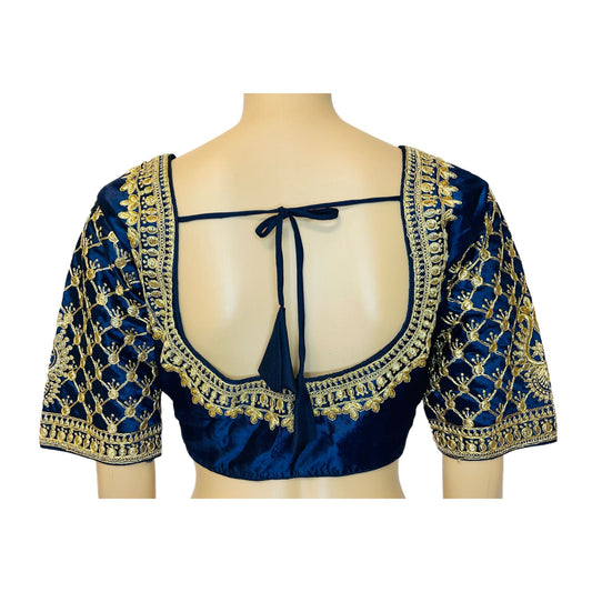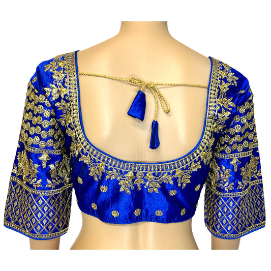 Blue Color Gold Embroidered Readymade Blouse, Padded Blouse, Designer Blouse , Wedding Blouse