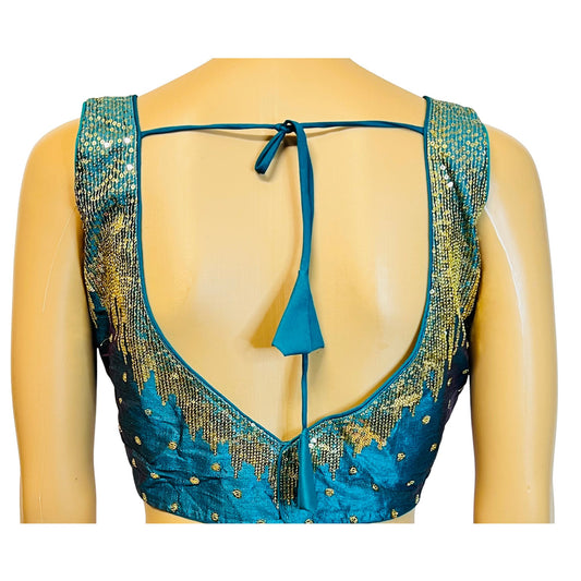 Dual Tone Peacock Blue Color Milan Silk Sequence Work Readymade Blouse, Designer Blouse, Crop Top, Tunic Top, Fancy Blouse, Party Wear Blouse, Wedding Blouse