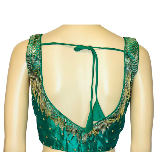 Green Color Milan Silk Sequence Work Readymade Blouse, Designer Blouse, Crop Top, Tunic Top, Fancy Blouse, Party Wear Blouse, Wedding Blouse