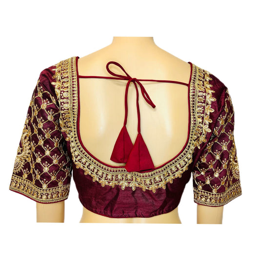 Maroon Color Gold Embroidered Readymade Blouse, Padded Blouse, Designer Blouse , Wedding Blouse