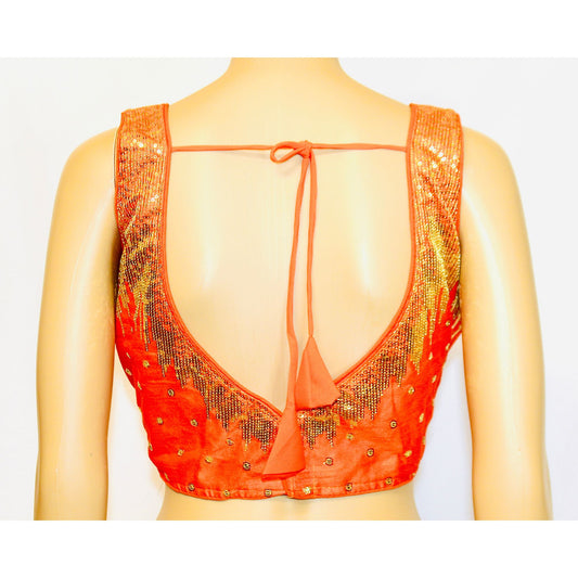 Orange Color Milan Silk Sequence Work Readymade Blouse, Designer Blouse, Crop Top, Tunic Top, Fancy Blouse, Party Wear Blouse, Wedding Blouse