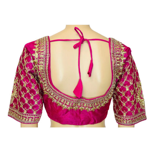 Pinkish Red Color Gold Embroidered Readymade Blouse, Padded Blouse, Designer Blouse , Wedding Blouse