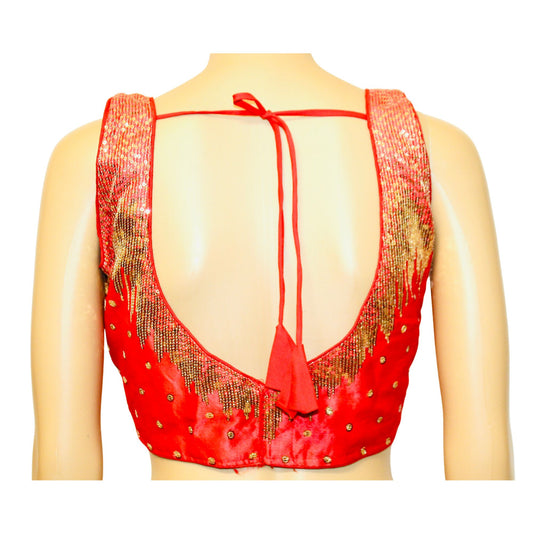 Pinkish Red Color Milan Silk Sequence Work Readymade Blouse, Designer Blouse, Crop Top, Tunic Top, Fancy Blouse, Party Wear Blouse, Wedding Blouse