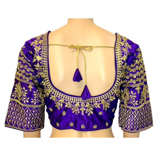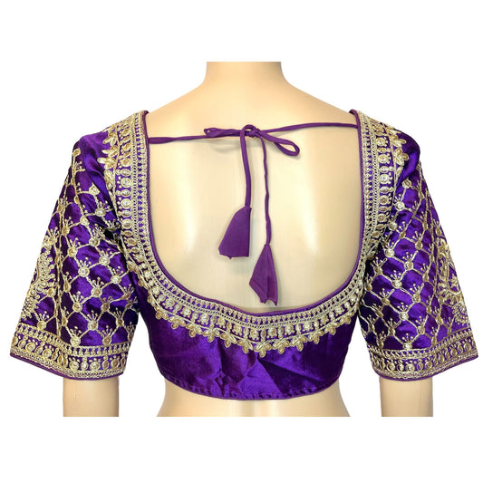 Purple Color Gold Embroidered Readymade Blouse, Padded Blouse, Designer Blouse , Wedding Blouse