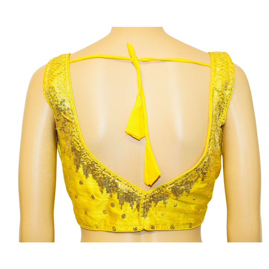 Yellow Color Milan Silk Sequence Work Readymade Blouse, Designer Blouse, Crop Top, Tunic Top, Fancy Blouse, Party Wear Blouse, Wedding Blouse