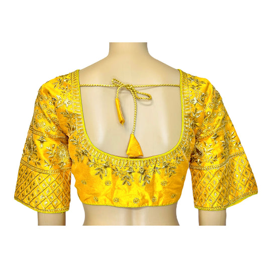 Yellow Color Gold Embroidered Readymade Blouse, Padded Blouse, Designer Blouse , Wedding Blouse