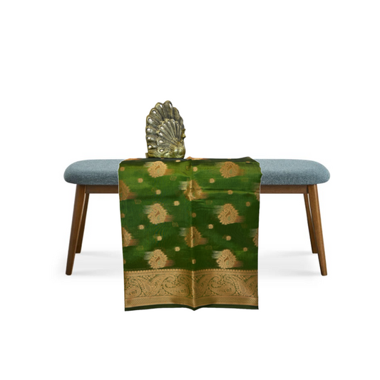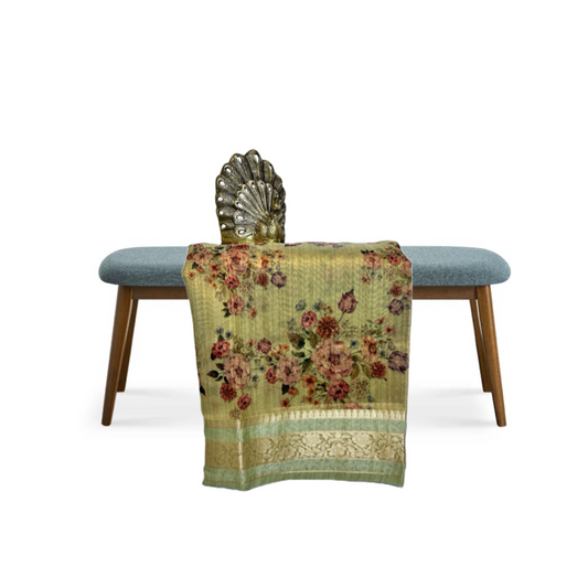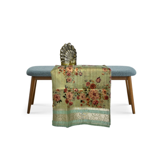 Pista Green floral printed tussar Silk saree with Jari border & intricate pallu