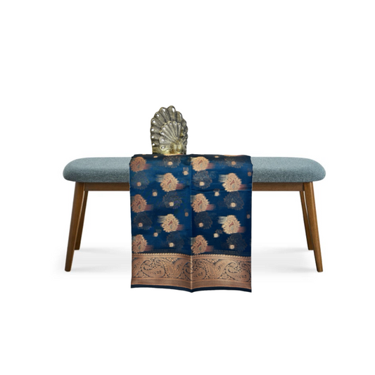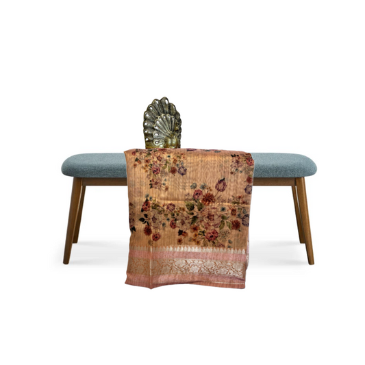 Peach floral printed tussar Silk saree with Jari border & intricate pallu