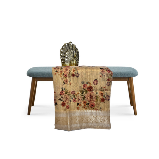 Beige floral printed tussar Silk saree with Jari border & intricate pallu