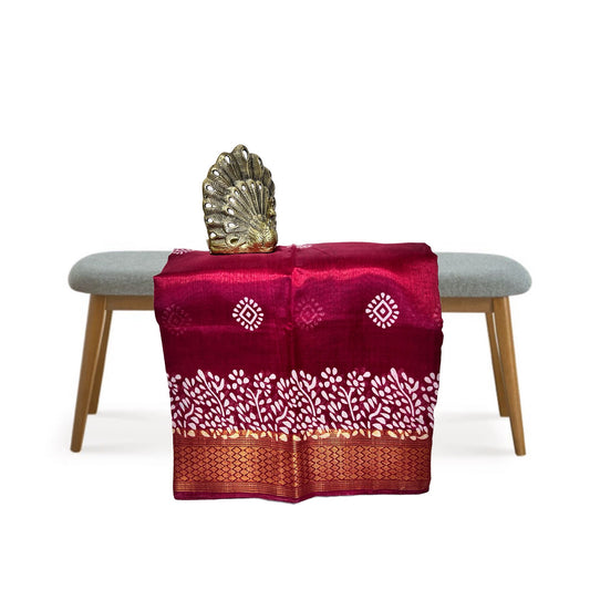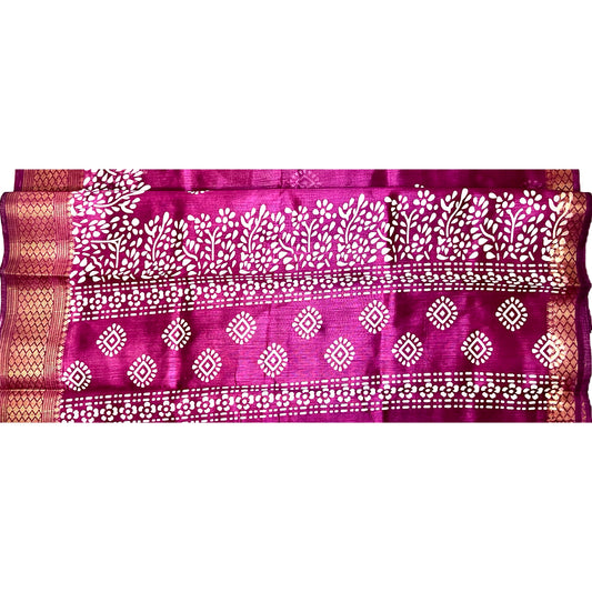 Magenta Color Soft Slub Cotton Silk Saree With Batik Print
