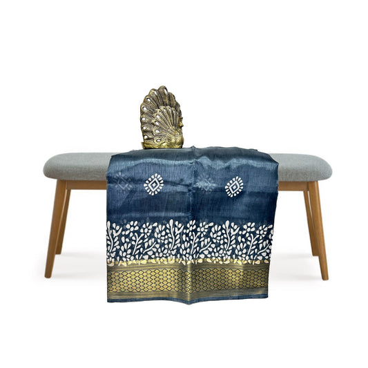Dark Blue Color Soft Slub Cotton Silk Saree With Batik Print