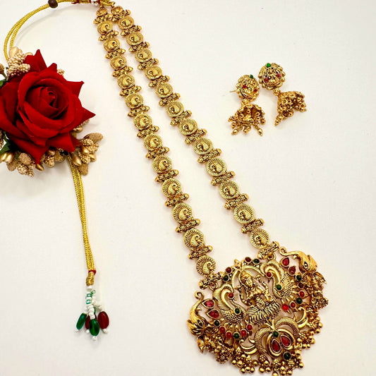 Traditional Lakshmi Temple Jewelry Set - Antique Gold Necklace and Earrings for Women
