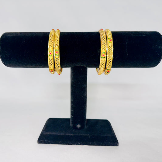 Elegant Gold-Plated Traditional Indian Bangles with Intricate Design and Gemstone Accents - Set of 4
