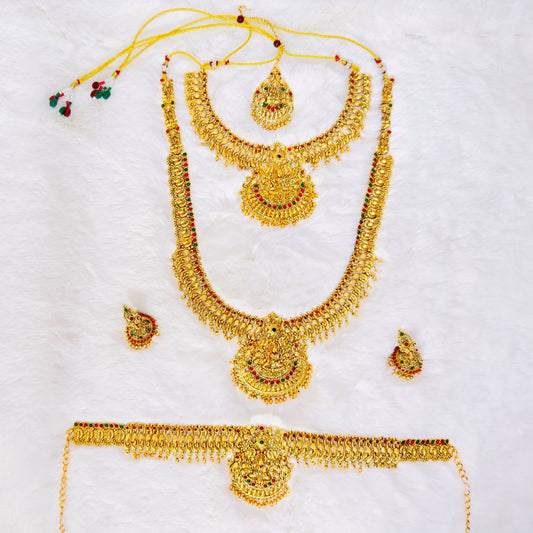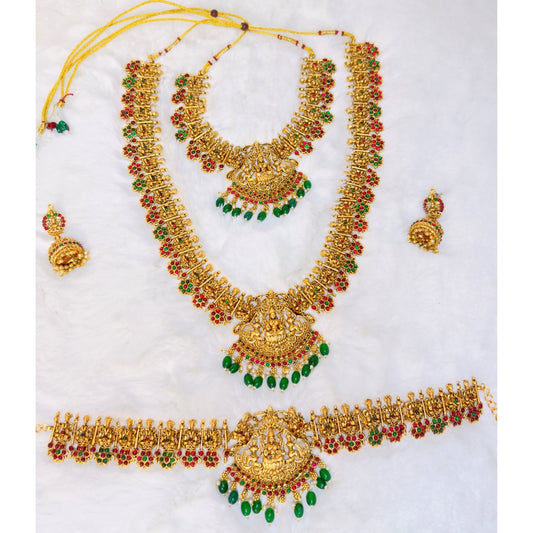 Premium Quality Temple Haram South Indian Jewelry Set With Earrings, Maangtika And Kamar Patti ( Hip Belt), Bridal Set Jewelry, South Indian Jewelry Set, Gold Plated Jewelry, Temple Jewelry, Wedding Jewelry