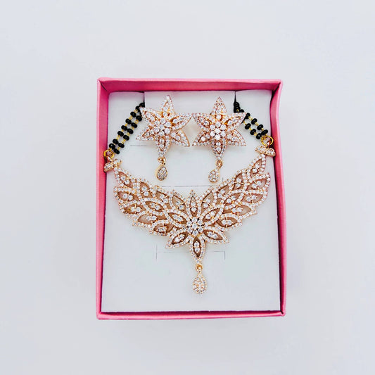 Beautiful Ad Stone Diamond Pendant with black beads Poth Mangalsutra With Earrings