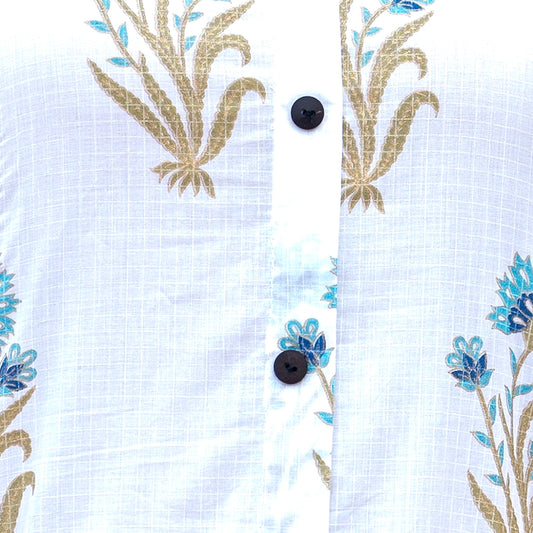 Jaipuri Mughal Print White Color Aline Kurti With Ankle Length Pant , Co-Ord Set, Perfect For Summer Season