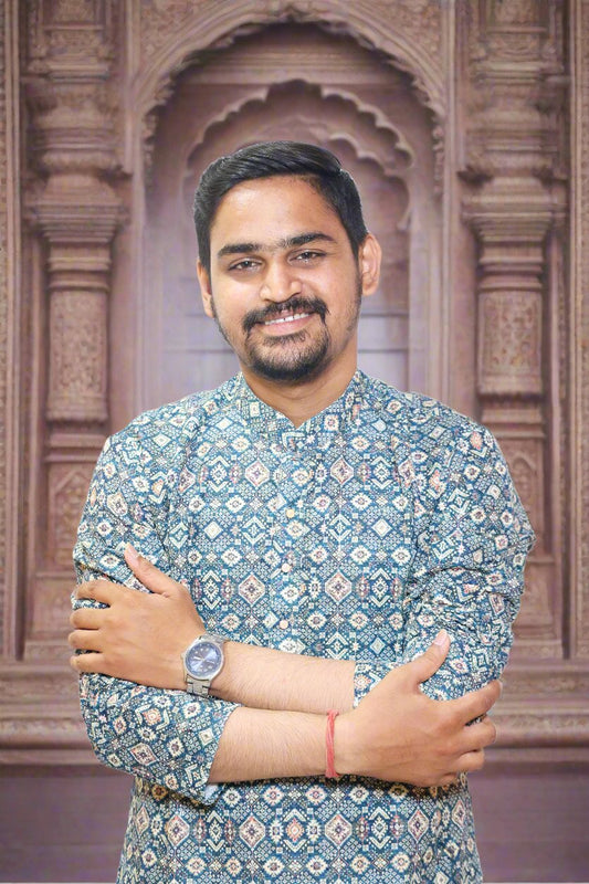 Mens Navy Blue Sequence With Self Design Kurta & White Pajama Set, Traditional Wear Kurta Churidaar, Salwar Kameez, Men's Ethnic Wear, Indian Wear