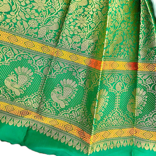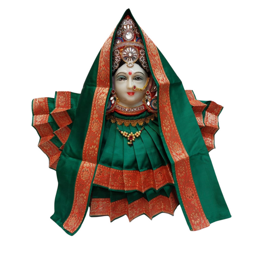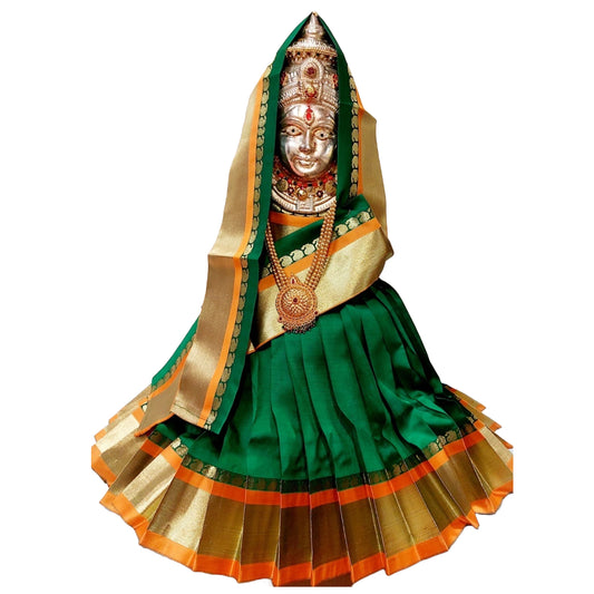 Divine Green & Orange Double Layer Silk Saree for Varalakshmi Idol, TraditionalDevi Alankaram Set for Pooja, Devi Dress, Varalakshmi Alanka