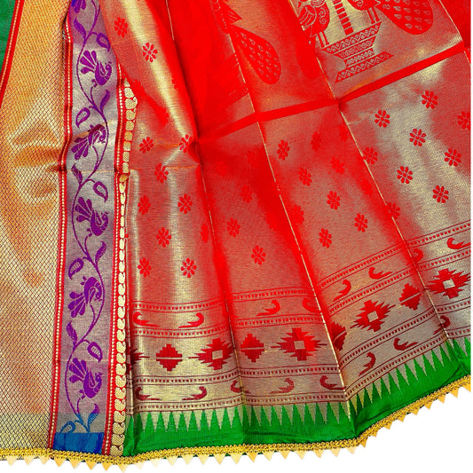 Heavy Peacock Zari Work Paithani Silk Gudi Saree for Gudi Padwa, Gudi Vastra , Ready to use..