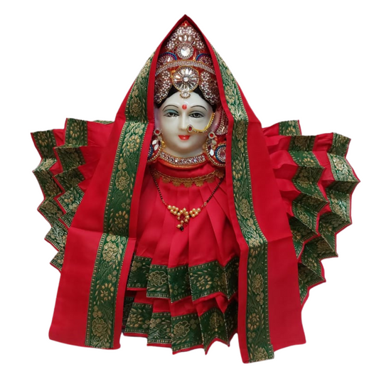 Divine Red & Green Double Layer Silk Saree for Varalakshmi Idol, Traditional Devi Alankaram Set for Pooja, Devi Dress, Varalakshmi Alankaram