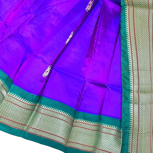 Festive Green Gudi Padwa Saree with Purple Paithani Border – Ready to Use