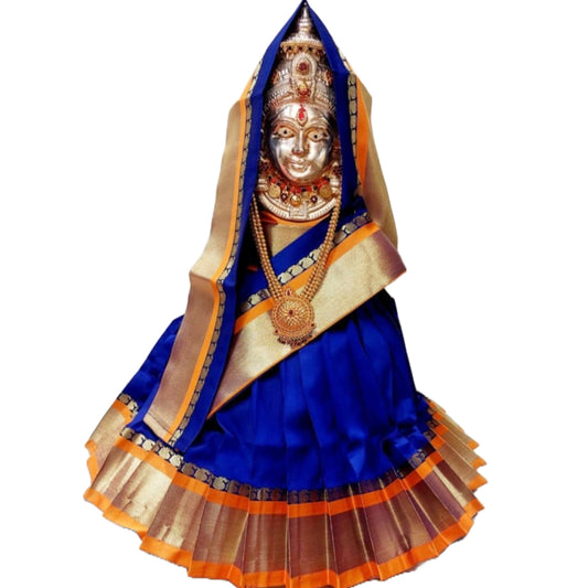 Divine Blue & Orange Double Layer Silk Saree for Varalakshmi Idol,Traditional Devi Alankaram Set for Pooja,Devi Dress, Varalakshmi Alankaram