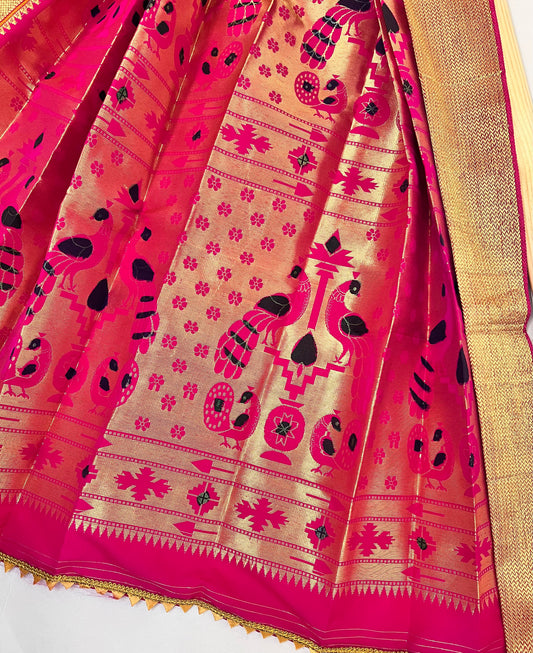 Pink Paithani Gudi Vastra, Readymade Paithani Saree for Gudi Padwa Pooja, Pre Pleates ready To Use Gudi Saree