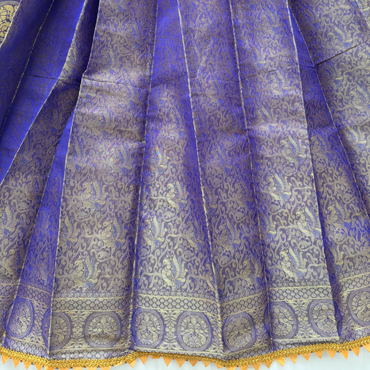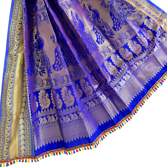 Ready-Made Purple Gudi Saree with Elegant Zari & Vibrant Border for Pooja Decor