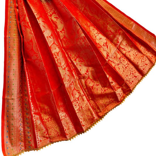 Orange Gudi Padwa Saree with Heavy Zari Work and Matching Border – Readymade & Reusable