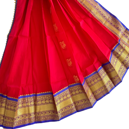 Radiant Red Gudi Padwa Saree with Grand Zari Border – Ready to Use