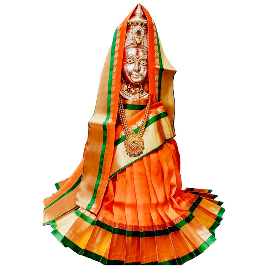 Orange Varalakshmi Kalasam/Kalash Saree, Navaratri Goddess Silk Saree , Mata Rani, Devi, Durga, Maa Laxmi Poshak, Margashirsha Devi Saree