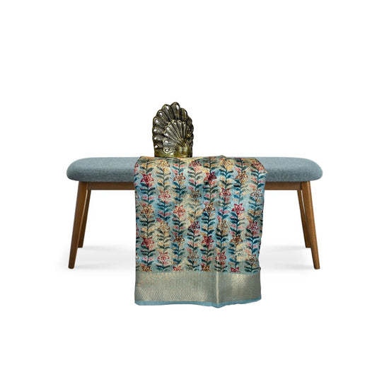 Light Sky Blue Color Floral Printed Tussar Silk Saree And Zari Woven Design