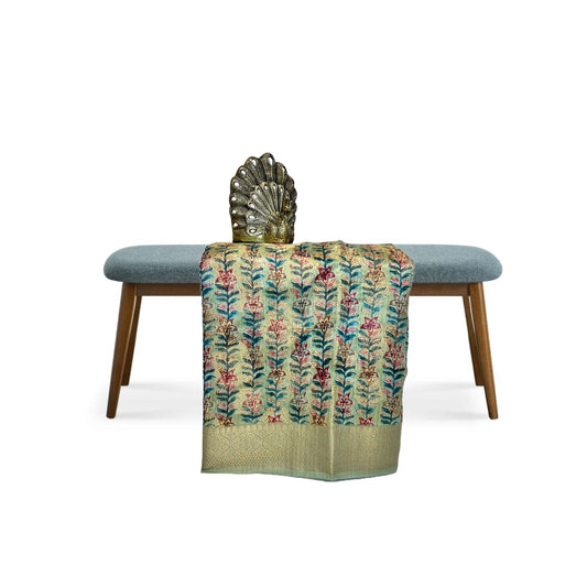 Pistachio Green Color Floral Printed Tussar Silk Saree And Zari Woven Design