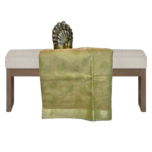 Olive Green Kota Silk Embroidery Saree with lining blouse