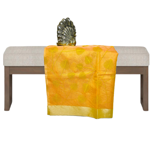 Mustered Yellow Kota Silk Embroidery Saree with lining blouse