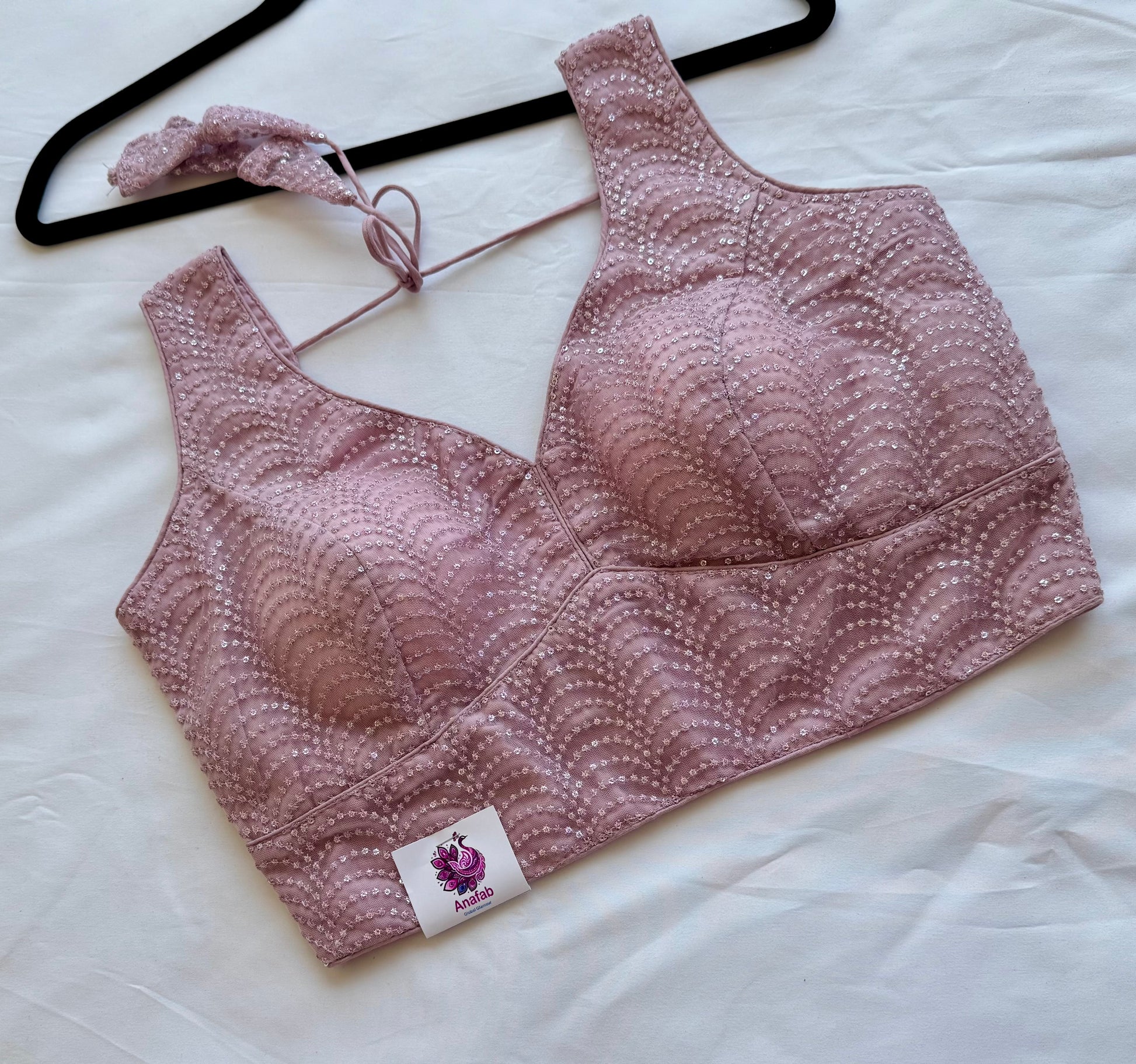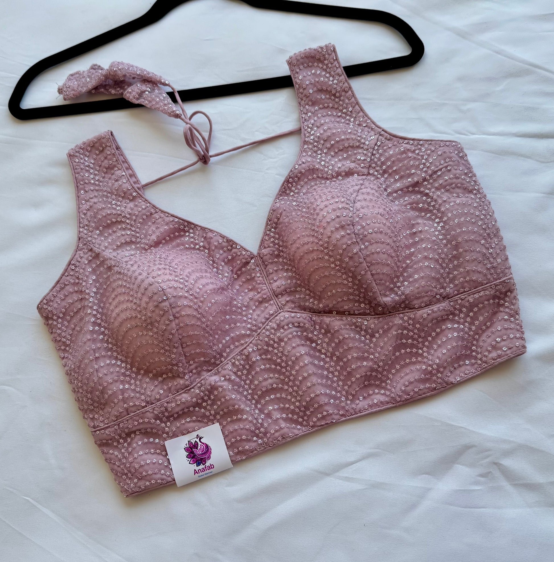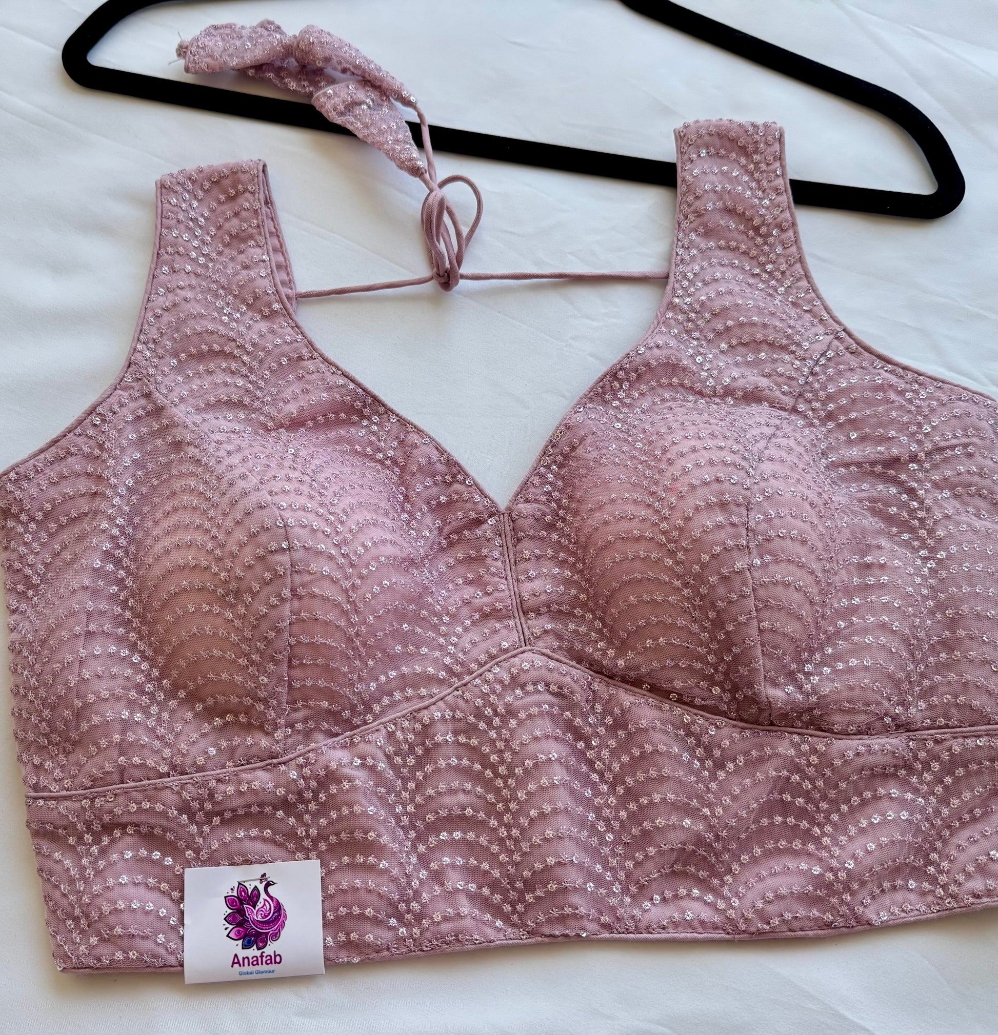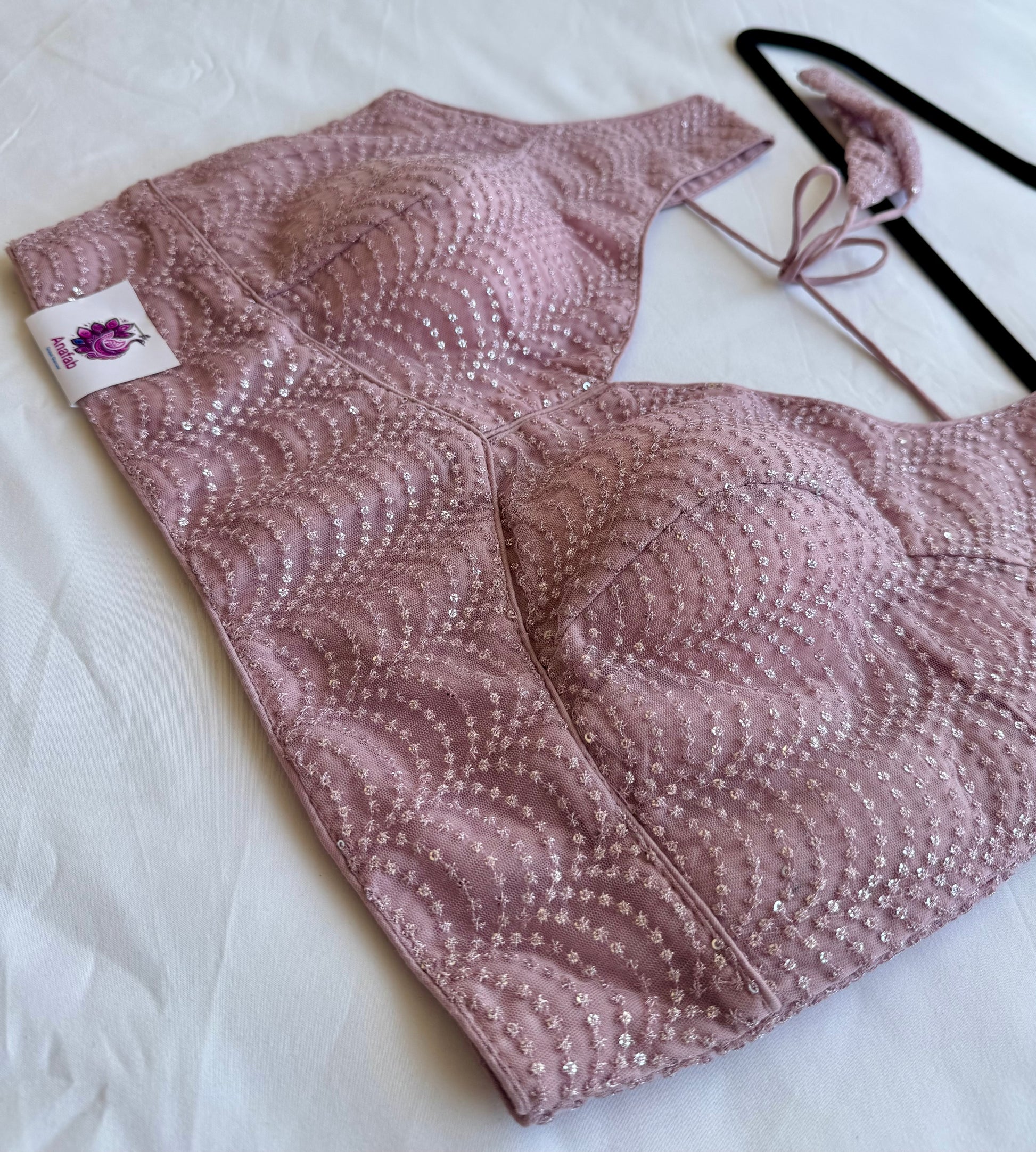 Soft, elegant, and easy to style — this Queen Pink designer blouse is perfect when you want something subtle yet eye-catching. The delicate sequin work is arranged in a graceful pattern that adds just the right amount of shimmer without feeling too heavy.